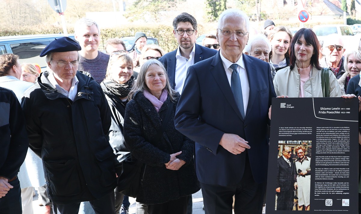 Bayerns Innenminister Joachim Herrmann hat heute mit dem Erlanger Oberbürgermeister, Dr. Florian Janik, in Erlangen die Gedenkstele zur Erinnerung an den am 19. Dezember 1980 ermordeten Rabbiner Shlomo Lewin und seine Lebensgefährtin Frida Poeschke eingeweiht. "Dieses brutale Verbrechen macht uns alle noch immer tief betroffen. Die Erinnerung an Shlomo Lewin und Frida Poeschke wachzuhalten, ist unsere gemeinsame Verantwortung. Hier und in ganz Bayern darf kein Platz für Antisemitismus, Rassismus und Menschenfeindlichkeit sein." Daher engagiere sich Herrmann auch nach Kräften für die Stärkung des interreligiösen Dialogs: "Denn Religionen tragen die Werte von Menschenwürde und Solidarität in die Welt. Beides, ein Leben in Sicherheit und ein starker gesellschaftlicher Zusammenhalt, das sind wir gerade auch den Opfern von Antisemitismus wie Shlomo Lewin und Frida Poeschke schuldig!"