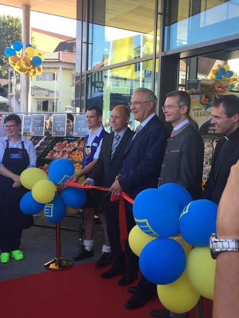 „Sie haben mit dieser sehr zentralen Einkaufsmöglichkeit einen Attraktivitätsbonus für Ihren Ort geschaffen“, sagte Innen- und Kommunalminister Joachim Herrmann bei der Eröffnungsfeier des gemeindlichen Lebensmittelmarktes in Ried im Landkreis Aichach-Friedberg. Bei der Umsetzung dieser und weiterer Maßnahmen konnte sich Ried auf die Bayerische Staatsregierung als Partner verlassen: So wurde die Neugestaltung des Vorplatzes zwischen der Hauptstraße und dem Lebensmittelmarkt mit 180.000 Euro aus dem Bayerischen Städtebauförderungsprogramm bezuschusst. Des Weiteren wurden für die Schaffung eines kommunalen Parkplatzes weitere 60.000 Euro zur Verfügung gestellt. „Gut angelegtes Geld, um Sie tatkräftig dabei zu unterstützen, Ihren Heimatort fit für die Zukunft zu machen“, resümierte Herrmann.Ein großer Dank galt Bürgermeister Erwin Gerstlacher, dessen Gemeinde für das Großprojekt selbst die Bauherrschaft übernommen hat, als kein Investor für den neuen Markt gefunden werden konnte. „Ich danke Ihnen für Ihren Mut und den Weitblick, dieses Vorhaben im Sinne Ihrer Gemeinde nicht aufzugeben“, sagte Herrmann. Ganz besonders lobte der Minister den spürbar großen Zusammenhalt: „Als Besucher merkt man hier im Wittelsbacher Land sofort den Gemeinschaftsgeist, das Miteinander und die aufrichtige Solidarität“, so Herrmann und weiter: „Ried ist ein authentisches Stück bayerische Heimat, wo auch Vereinsangebote, ehrenamtliches Engagement und Geselligkeit nicht zu kurz kommen.“