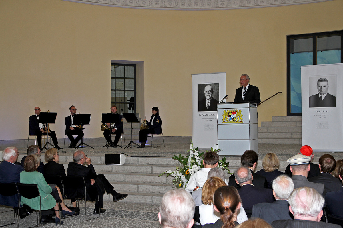 Bayerns Innenminister Joachim Herrmann hat bei einem Staatsempfang in München die demokratische Haltung, den konsequenten Einsatz für Recht und Ordnung und den nachhaltigen Widerstand gegen die Machtergreifung durch die Nationalsozialisten durch die beiden Bayerischen Innenminister der Weimarer Republik, Dr. Franz Xaver Schweyer und Karl Stützel gewürdigt. "Beide haben den Wahn des Nationalsozialismus bereits in den 20er Jahren des letzten Jahrhunderts enttarnt, öffentlich davor gewarnt und versucht, ihn mit einer strikt antinationalsozialistischen Politik zurückzudrängen", so der Bayerische Innenminister an diesem 26. August, an dem Dr. Schweyer 150 Jahre alt geworden wäre. Herrmann sagte, der Staatsempfang solle seinen beiden Amtsvorgängern, die das Ressort von 1921 bis 1933 innehatten, ein angemessenes, wenn auch spätes Gedenken bereiten und an ihren couragierten Einsatz für Demokratie und Verfassung im Freistaat in Zeiten der Weimarer Republik erinnern.Der damalige Innenminister Dr. Schweyer habe die von der rechtsextremen Bewegung drohende Gefahr für die staatliche Ordnung bereits früh erkannt und sich schon im März 1922 bei den Fraktionsvorsitzenden der Landtagsparteien leider erfolglos für eine Ausweisung Hitlers stark gemacht. Als Verantwortlicher für die Innere Sicherheit, überzeugter Demokrat und Mitglied der Bayerischen Volkspartei setzte er seinen Weg dennoch ungebrochen fort und unternahm weiterhin alles in seiner Macht stehende, um extremistische Gefahren im Freistaat – von links wie von rechts – zu bannen und das Volk zu schützen.