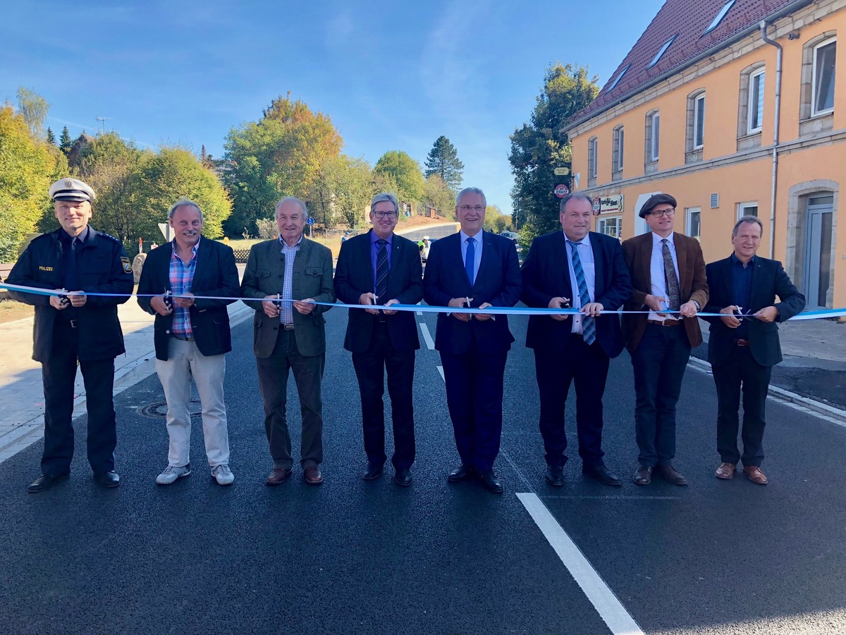 Ortsdurchfahrt Weiher bei Uttenreuth früher als geplant fertiggestellt - Bayerns Innenminister Joachim Herrmann gibt symbolisch Verkehr auf der sanierten Staatsstraße 2240 frei: Mehr Verkehrssicherheit, besserer Verkehrsfluss und weniger Verkehrslärm - Durchgehender Geh- und Radweg