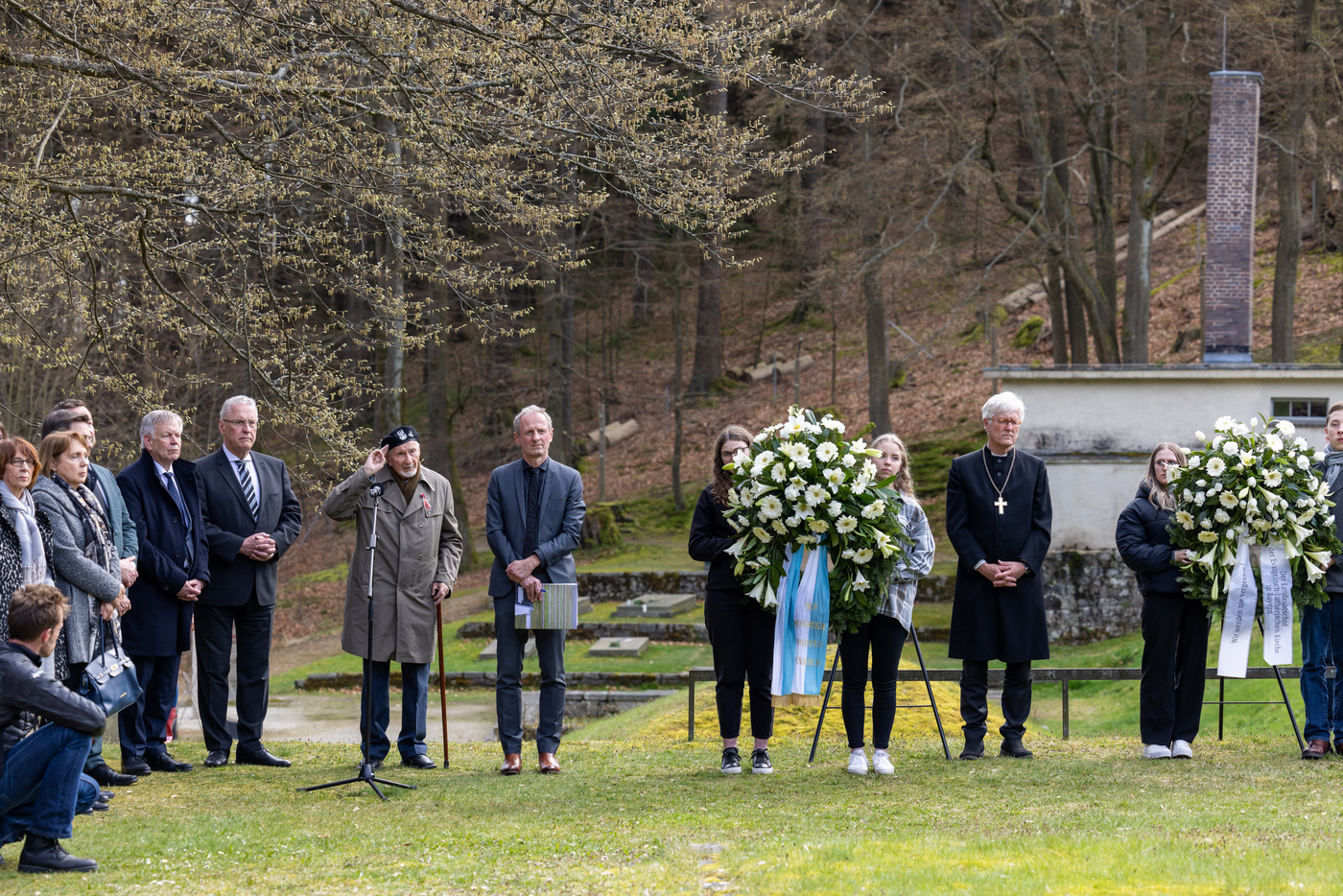 Der Innenminister dankte daher auch allen KZ-Überlebenden, die sich als Zeitzeugen des Grauens unermüdlich in der Erinnerungsarbeit engagieren, sowie allen Mitarbeiterinnen und Mitarbeitern der Gedenkstätte für ihre wichtige Bildungsarbeit. "78 Jahre nach den Schrecken des Nationalsozialismus leben wir in Deutschland in einer stabilen Demokratie. Dass das alles andere als selbstverständlich ist, lehrt uns nicht nur der Blick in unsere Geschichte, sondern auch der schreckliche Angriffskrieg auf die Ukraine." Mit Blick darauf machte der Minister unmissverständlich deutlich: "Es ist richtig und wichtig, dass wir dem ukrainischen Volk gegen die russische Aggression auch mit Waffen und schwerem Geschütz beistehen. Denn dort werden auch unsere gemeinsamen europäischen freiheitlichen Werte verteidigt." Herrmann erinnerte "an einem Ort des tiefsten Abgrunds unserer deutschen Geschichte" daran, dass auch die hier begangene Barbarei nicht am Verhandlungstisch, sondern militärisch niedergerungen wurde. "Das Bekenntnis für Frieden und Freiheit darf im Ernstfall kein bloßes Lippenbekenntnis bleiben. Es geht auch mit dem Auftrag einher, bei einem Angriff auf unsere Demokratie verteidigungsfähig zu sein," so der Innenminister abschließend.