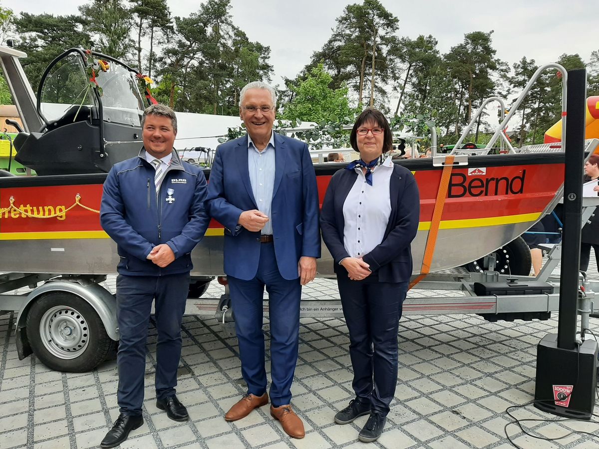 Der Ortsverband Dechsendorf der Deutschen Lebens-Rettungs-Gesellschaft (DLRG) hat allen Grund zu feiern: Heute wurde nicht nur die coronabedingt ausgefallene Feier zum 50-jährigen Jubiläum nachgeholt, sondern es wurden auch ein neues Wasserrettungszentrum eingeweiht sowie zwei neue Einsatzboote mit einer Bootstaufe in Dienst gestellt. Bayerns Innen- und Katastrophenschutzminister Joachim Herrmann ist begeistert: "Das neue Wasserrettungszentrum ist hochmodern und vielseitig nutzbar. Damit hat die DLRG in Dechsendorf einen hochfunktionalen Stützpunkt für mehr Sicherheit auf dem Wasser." Überzeugt ist der Innenminister auch von der Leistungsfähigkeit der beiden neuen Einsatzboote, bei denen der Freistaat die Kosten in Höhe von insgesamt rund 64.000 Euro vollständig übernommen hat. "Dank leistungsstarker Motoren und einer Top-Ausstattung können im Notfall schneller Leben gerettet werden."