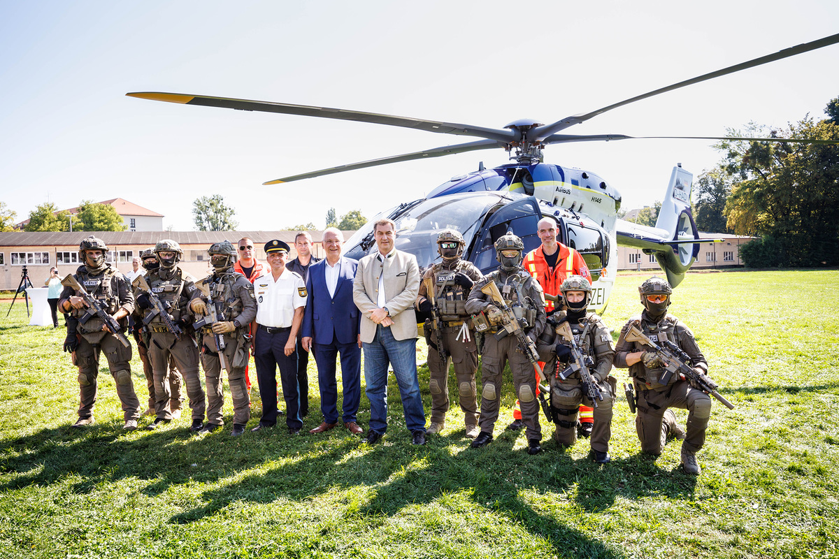 Bayerns Innenminister Joachim Herrmann und Ministerpräsident Dr. Markus Söder haben heute gemeinsam mit der Hubschrauberstaffel der Bayerischen Polizei die neuen Polizeihubschrauber vorgestellt: "Unsere neuen Airbus H145 sind ein technologischer Quantensprung. Mit den hochmodernen Polizeihubschraubern sind unsere Einsatzkräfte künftig noch besser ausgestattet", betonte Herrmann. Die Piloten der Hubschrauberstaffel werden bereits an zwei der neuen Maschinen ausgebildet und geschult. "Unser Ziel ist es, in den kommenden zwei Jahren die komplette Flotte durch acht neue Polizeihubschrauber des Typs H145 des Hersteller Airbus Helicopters zu ersetzen", kündigte Herrmann an. Ministerpräsident Dr. Söder betonte: "Sicherheit hat Top-Priorität. Wir haben in Bayern die niedrigste Kriminalitätsrate und höchste Aufklärungsquote – und das soll so bleiben. Deshalb haben wir so viele Polizisten wie nie und investieren viel Geld in modernste Ausstattung. Die acht neuen Hubschrauber sind Vier-Tonnen-Kraftpakete insbesondere für Vermisstensuchen, Löscheinsätze und den Transport von Spezialkräften. Insgesamt investieren wir 145 Millionen Euro. Das ist gut angelegtes Geld. Wir stehen zur Polizei und all unseren Einsatzkräften. Danke für ihre Leistung für unsere Sicherheit!"