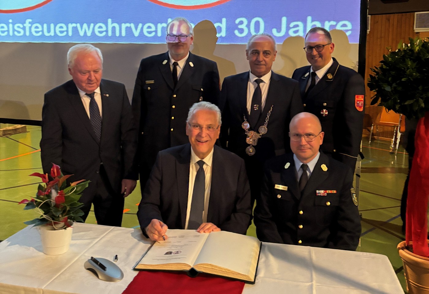 Bayerns Innen- und Katastrophenschutzminister Joachim Herrmann hat heute dem Kreisfeuerwehrverband Lichtenfels zum 30-jährigen Jubiläum gratuliert: "Die Feuerwehren sind das Herz unserer Gemeinschaft, denn ihre ständige Einsatzbereitschaft gewährleistet Schutz und Sicherheit für die Menschen in unserem Land. Der Kreisfeuerwehrverband Lichtenfels ist dabei eine starke und wichtige Interessenvertretung aller Freiwilligen und Werkfeuerwehren im Landkreis. Vielen Dank für Ihr Engagement und Ihre Ausdauer in den letzten 30 Jahren." Seit seiner Gründung im Jahr 1995 fördert der Kreisfeuerwehrverband die Aus- und Fortbildung der Feuerwehrfrauen und -männer und unterstützt die Zusammenarbeit aller am Brand- und Katastrophenschutz beteiligten Stellen und Organisationen. "Gerade auch die im Kreisfeuerwehrverband organisierten Freiwilligen Feuerwehren sind ein beeindruckendes Vorbild", so der Innenminister. Bayernweit leisten rund 320.000 Frauen und Männer ehrenamtlich bei den freiwilligen Feuerwehren ihren Dienst. "Eine so aktive Bürgergesellschaft, ein so starker freiwilliger Einsatz für die Gemeinschaft ist nicht selbstverständlich!"