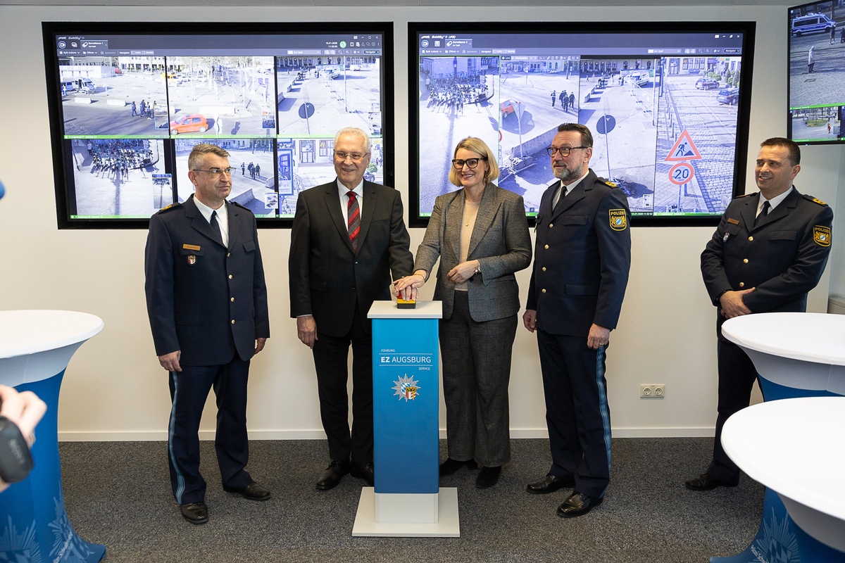 Bayerns Innenminister Joachim Herrmann hat heute gemeinsam mit Augsburgs Polizeipräsident Martin Wilhelm und Oberbürgermeisterin Eva Weber die neue polizeiliche Videoüberwachung am Augsburger Hauptbahnhof vorgestellt. "Auch im Jahr 2026 setzen wir unsere konsequente Sicherheitsstrategie fort. Die Sicherheit im öffentlichen Raum, insbesondere an Brennpunkten wie Bahnhofsplätzen und Innenstädten, hat für uns hohe Priorität. Die polizeiliche Videoüberwachung nimmt dabei eine zentrale Rolle ein. Sie wirkt präventiv, unterstützt die Strafverfolgung und ermöglicht der Polizei ein schnelles und zielgerichtetes Eingreifen. Mit der neuen Videoüberwachung schaffen wir noch mehr Sicherheit in Augsburg und stärken zugleich das Sicherheitsgefühl der Bevölkerung", betonte Herrmann.